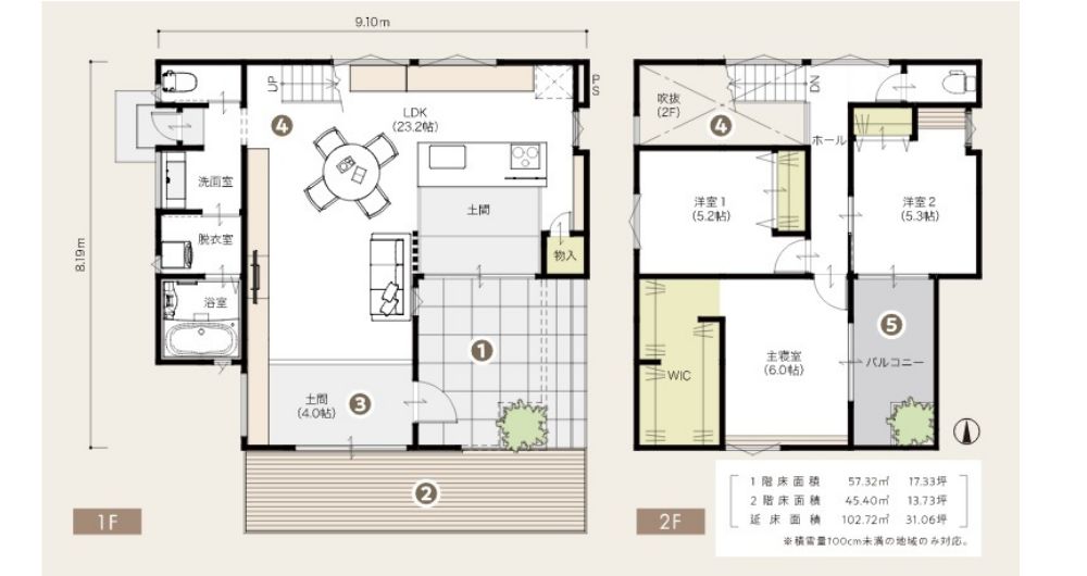 柱や壁の制約を受けずに2.7m×3.6mの軒下を実現しています。