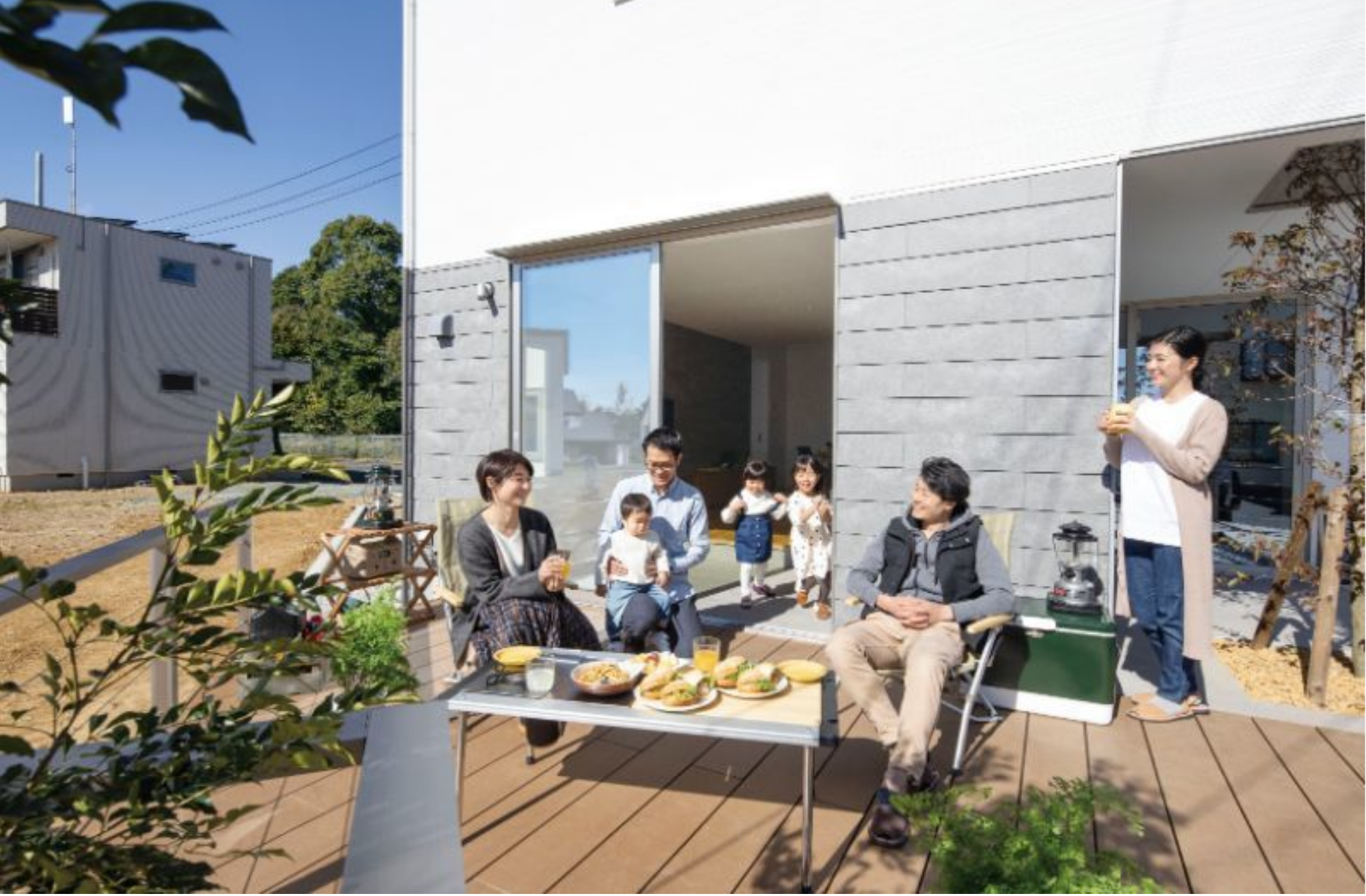 爽快なくつろぎや集いの場であり、アクティブな遊び場でもあるウッドデッキ。