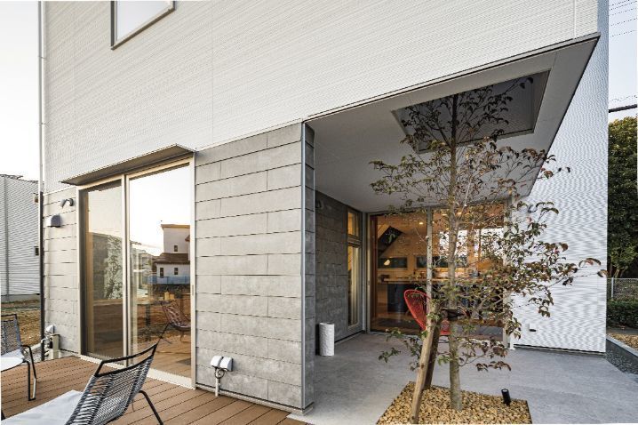 広い軒下にテーブルと椅子をセット。そこは陽ざしも雨も気にせずに友人を招けるわが家のオープンカフェ。キッチンからのアクセスフリーを生かして友人をもてなします。